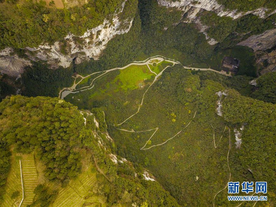 這是4月22日在陜西省漢中市寧強(qiáng)縣火石子村用無(wú)人機(jī)拍攝的地洞河天坑。位于陜西省漢中市寧強(qiáng)縣的地洞河天坑,是禪家?guī)r天坑群中規(guī)模最大的一處天坑,坑內(nèi)分布有石鐘乳、石筍,具有極高的地質(zhì)研究?jī)r(jià)值。 新華社記者 張博文 攝