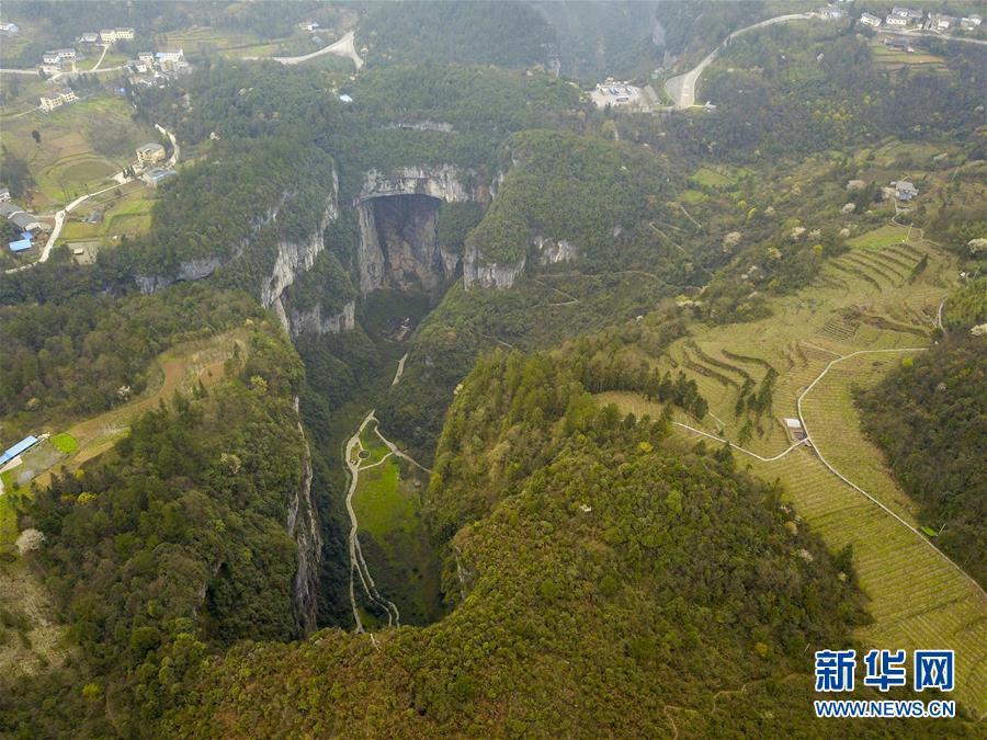 這是在天生三橋景區(qū)拍攝的神鷹天坑景觀(3月27日攝)。 隨著天氣轉(zhuǎn)暖,重慶武隆天生三橋景區(qū)風(fēng)景如畫(huà),氣勢(shì)磅礴的天生石橋和綠意盎然的山林相映成趣,吸引眾多游客前來(lái)踏春賞景。 新華社記者劉潺攝