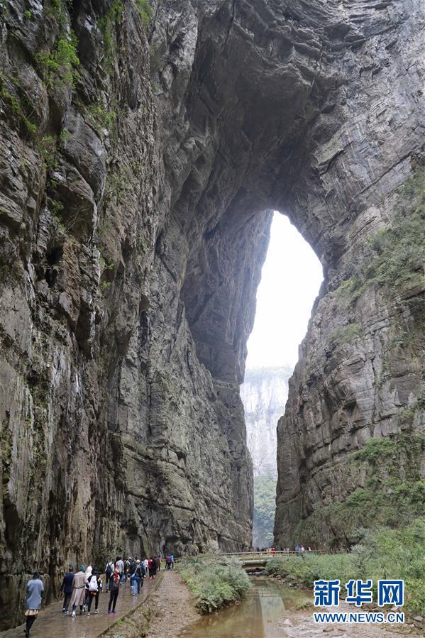 游客在天生三橋景區(qū)內(nèi)的黑龍橋景點(diǎn)游覽(3月27日攝)。 隨著天氣轉(zhuǎn)暖,重慶武隆天生三橋景區(qū)風(fēng)景如畫(huà),氣勢(shì)磅礴的天生石橋和綠意盎然的山林相映成趣,吸引眾多游客前來(lái)踏春賞景。 新華社記者劉潺攝