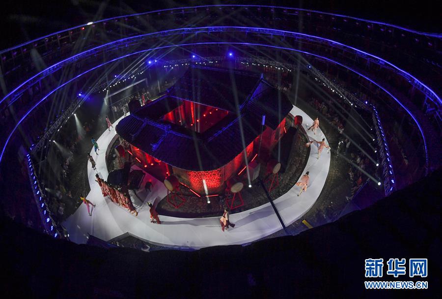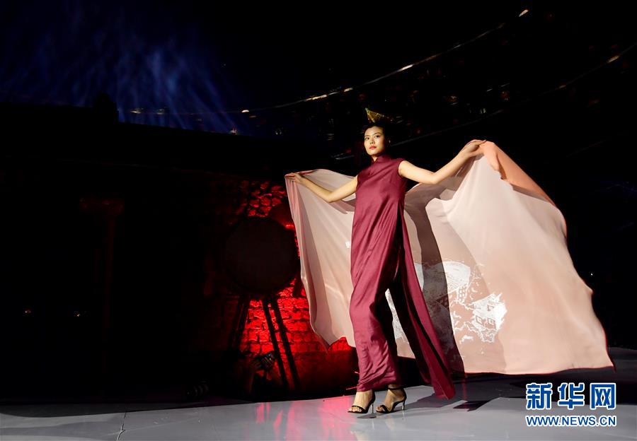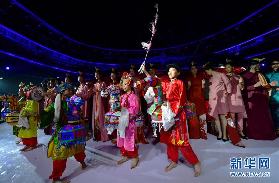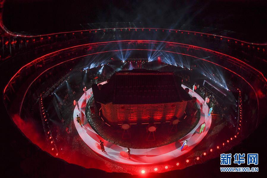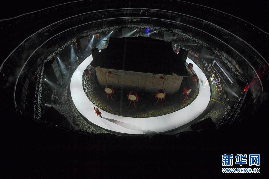 4月27日,表演結束后,模特在向觀眾致意。 當日,土樓光語國際時尚大秀在福建省南靖縣的土樓裕昌樓內舉行。這場融匯文化、時尚與旅游元素的大秀,通過傳統(tǒng)與時尚的有機融合,展現南靖土樓及文化的魅力和風采。 新華社記者魏培全攝