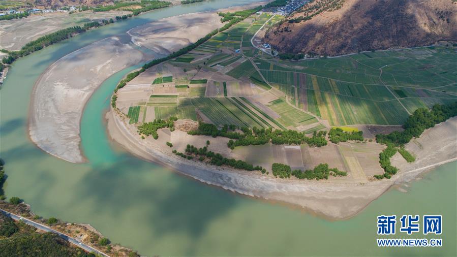 這是無人機拍攝的“長江第一灣”一景(3月17日攝)?!伴L江第一灣”位于云南省麗江市玉龍納西族自治縣石鼓鎮(zhèn),萬里長江從青藏高原奔騰而下,與瀾滄江、怒江一起在橫斷山脈的高山深谷中穿行形成并流的壯麗景觀。金沙江在麗江石鼓鎮(zhèn)突然以急轉(zhuǎn)彎轉(zhuǎn)向東北,形成一個宛若“V”字形的大轉(zhuǎn)彎,得名“長江第一灣”。春日里,“長江第一灣”江水青碧,美景迷人。 新華社記者胡超攝