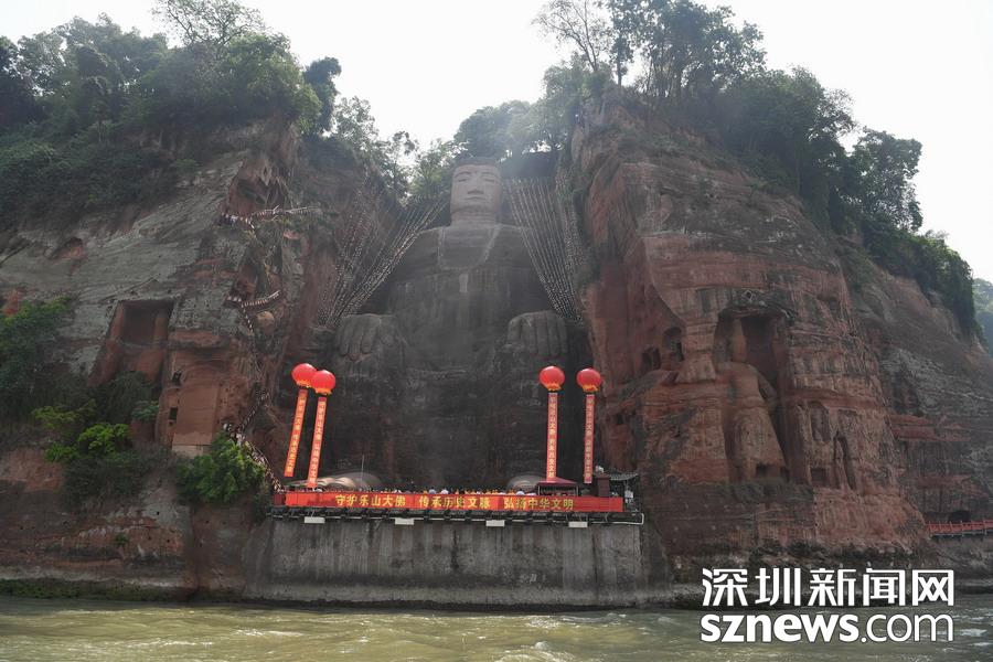 2019年4月26日,四川樂山,樂山大佛經過閉關“體檢”、美容保養(yǎng)及智能監(jiān)測等環(huán)節(jié)后,胸腹部開裂險情排除,生物病害得到有效控制,大佛正式出關。