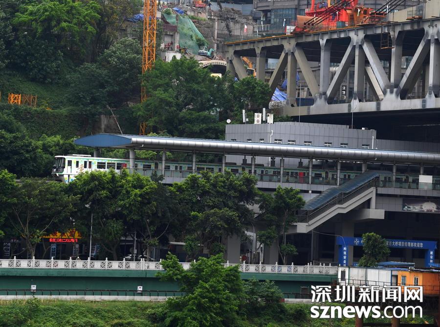 主橋鋼桁梁共44個(gè)節(jié)段,用鋼量約2.4萬噸,高栓63萬套。主橋上部結(jié)構(gòu)采用雙層橋面鋼桁梁形式,上層為雙向6車道及兩側(cè)人行道,下層為雙線城市軌道交通十號(hào)線,是國內(nèi)首個(gè)把軌道換乘站建在橋面上的公軌兩用橋。而在曾家?guī)r嘉陵江大橋渝中區(qū)橋頭正下方,則是重慶軌道交通二號(hào)線的曾家?guī)r站,該線路也是重慶最早投入運(yùn)行的軌道交通線路。