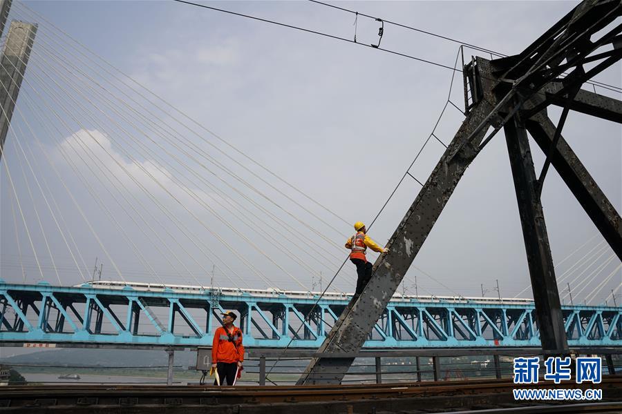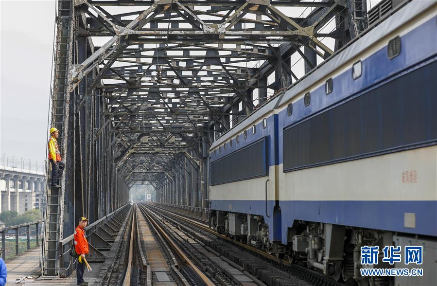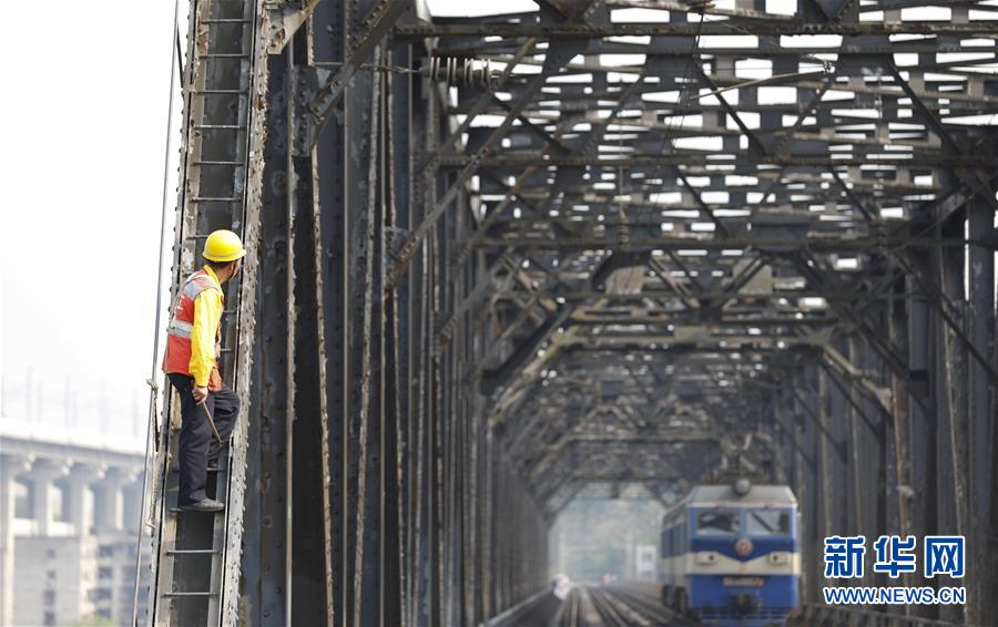 中國鐵路成都局有限公司重慶工務(wù)段的巡檢班組在白沙沱長江大橋上進(jìn)行巡檢作業(yè)(4月23日攝)。 4月23日下午5點(diǎn)40分,隨著重慶白沙沱長江大橋通行的最后一列客運(yùn)列車順利通過,這座“服役”了59年的重慶首座長江大橋進(jìn)入“退役”倒計時。4月24日后,所有列車將改線經(jīng)距白沙沱長江大橋約100米的新白沙沱長江特大橋通行,新橋“接力”老橋,運(yùn)輸能力將得到大幅提升。 白沙沱長江大橋于1958年開工,1960年通過首趟列車,是繼武漢長江大橋之后的第二座長江大橋。 新華社記者 劉潺 攝