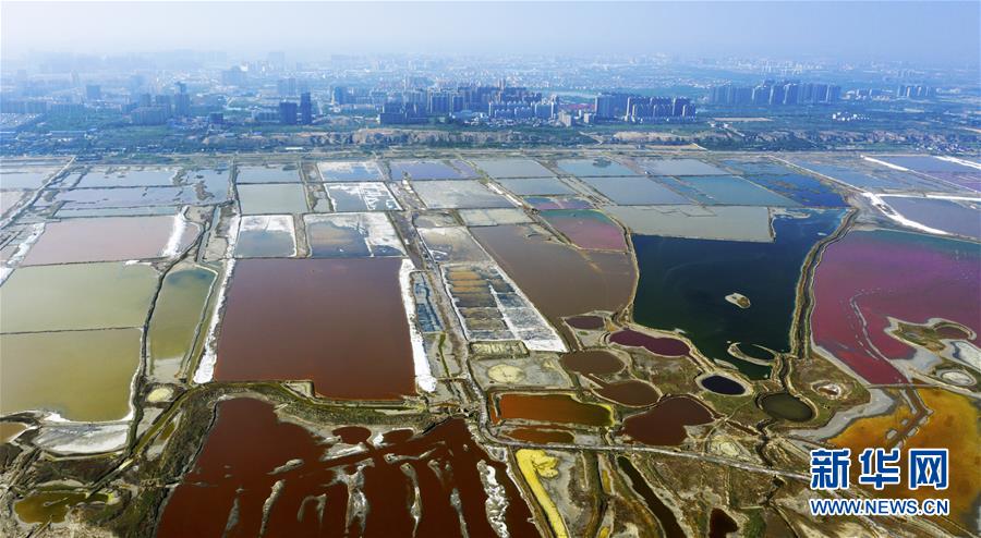 這是4月23日無(wú)人機(jī)拍攝的山西運(yùn)城鹽湖。新華社記者 曹陽(yáng) 攝