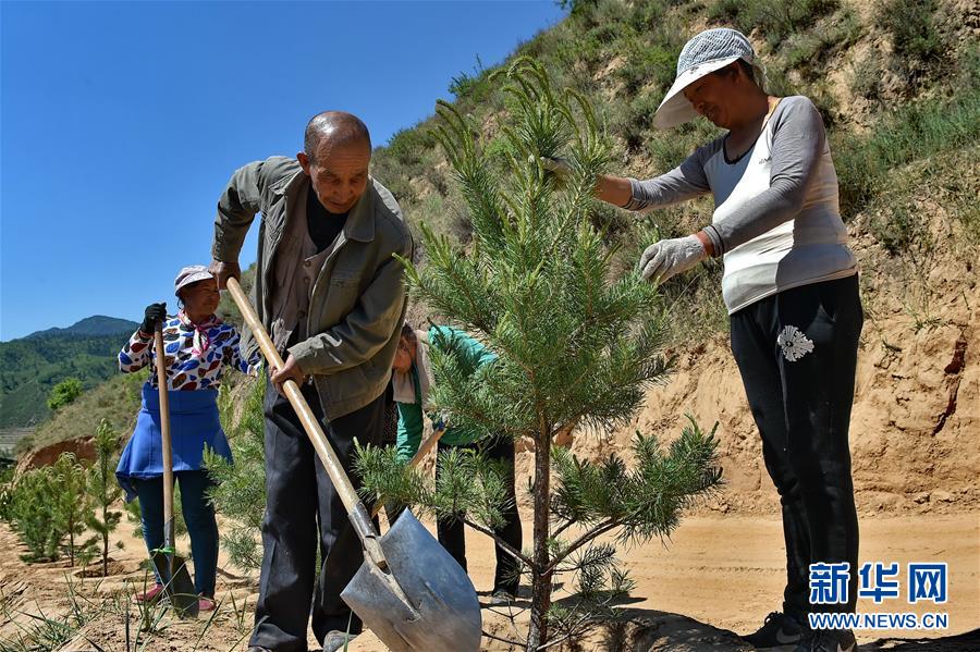 2017年5月26日,嵐縣會(huì)里村村民在呂梁山上種樹(shù)。新華社記者 曹陽(yáng) 攝