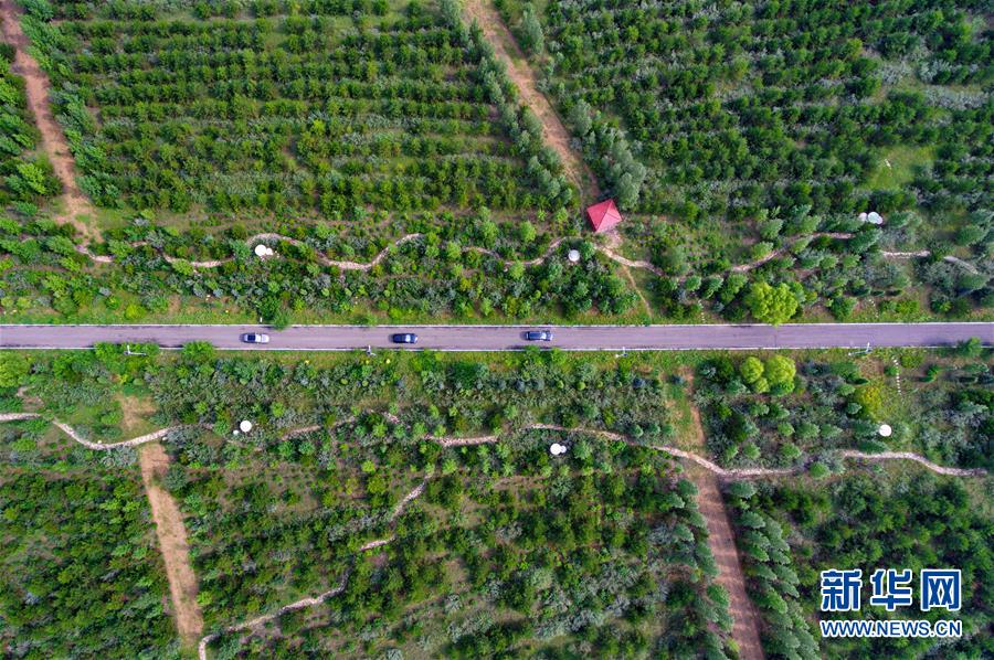 這是2018年8月7日無(wú)人機(jī)拍攝的山西省右玉縣小南山森林公園。 新華社記者 曹陽(yáng) 攝
