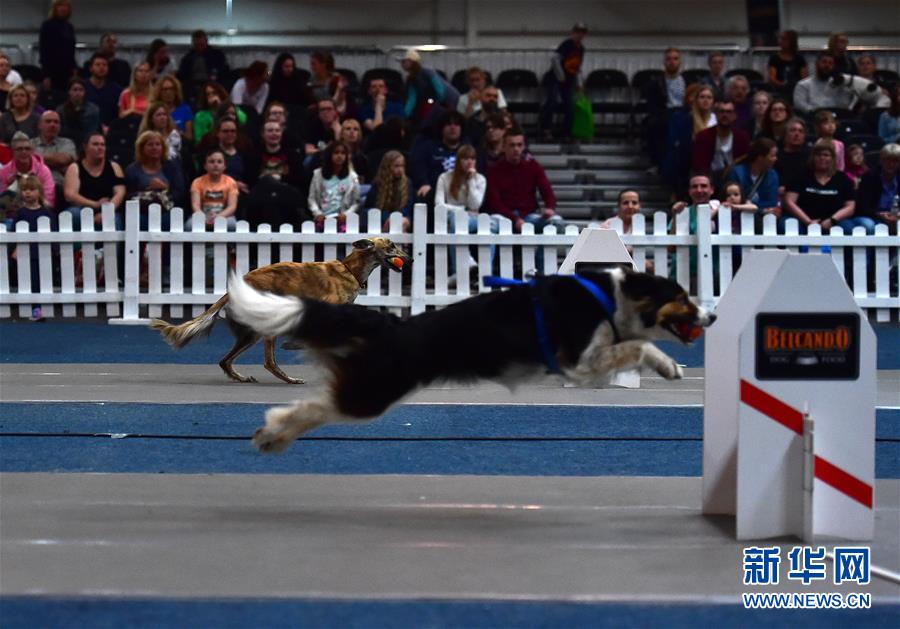 5月19日,在德國(guó)多特蒙德舉行的寵物展上,兩只狗狗參加速度競(jìng)賽。 為期三天的德國(guó)多特蒙德“狗和貓”寵物展19日落幕。寵物展期間,人們帶著自己的“萌寵”來(lái)到會(huì)場(chǎng),參與寵物跳水、舞蹈、選美等趣味比賽,并與其他寵物愛(ài)好者及展商交流互動(dòng)。 新華社記者逯陽(yáng)攝