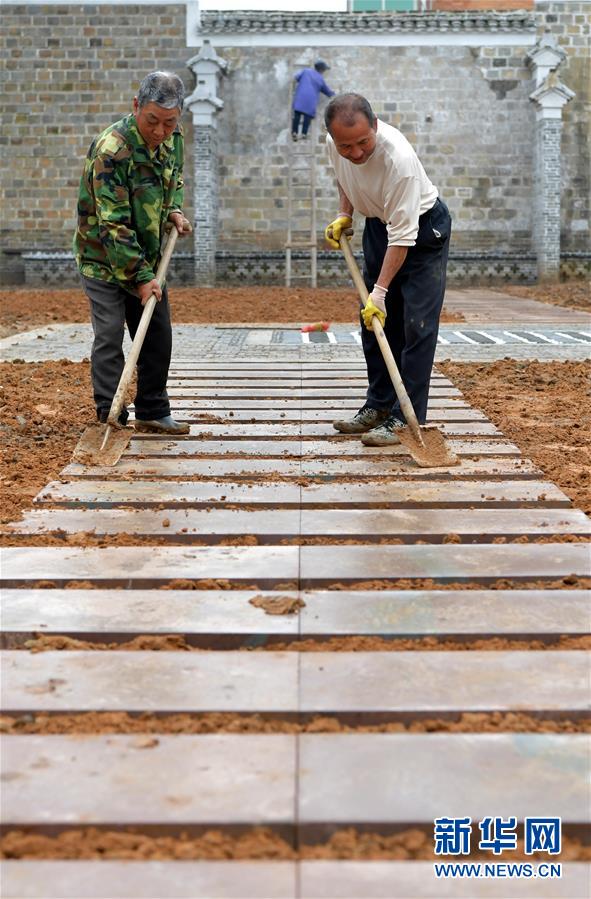 4月28日,在江西省南昌市南昌縣岡上鎮(zhèn)省級文物保護(hù)單位“吳氏家廟”內(nèi),搶修工程隊(duì)的工人在鋪磚。近年來,江西省南昌市南昌縣推動(dòng)古村落保護(hù)工作。2019年,首批搶修工程隊(duì)進(jìn)駐南昌縣岡上鎮(zhèn),對當(dāng)?shù)刂氖〖壩奈锉Wo(hù)單位“吳氏家廟”及縣級文物保護(hù)單位“吳培荊堂古建筑群”進(jìn)行搶救性維修。同時(shí)當(dāng)?shù)卣€制定文旅規(guī)劃,讓文物保護(hù)與觀光旅游相結(jié)合,推動(dòng)鄉(xiāng)村振興。 新華社記者 彭昭之 攝