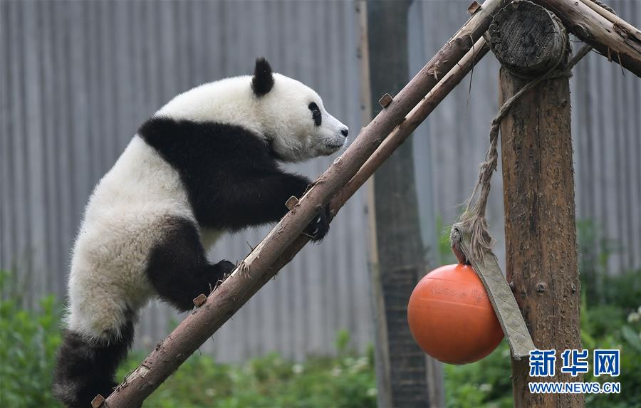 5月25日在中國(guó)大熊貓保護(hù)研究中心臥龍神樹坪基地的“熊貓幼兒園”內(nèi)拍攝的大熊貓。