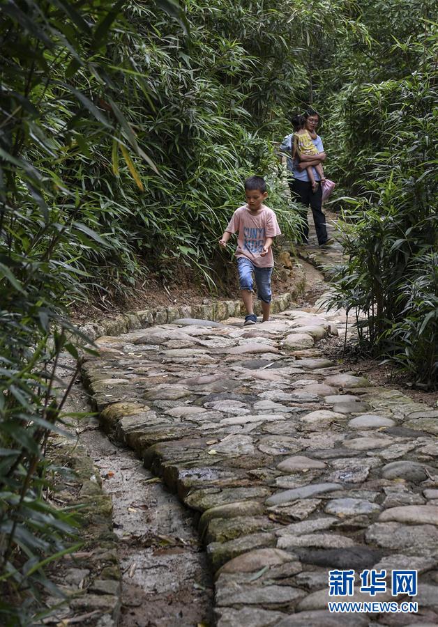 6月1日,行人走在香山古驛道的翠竹幽徑上。