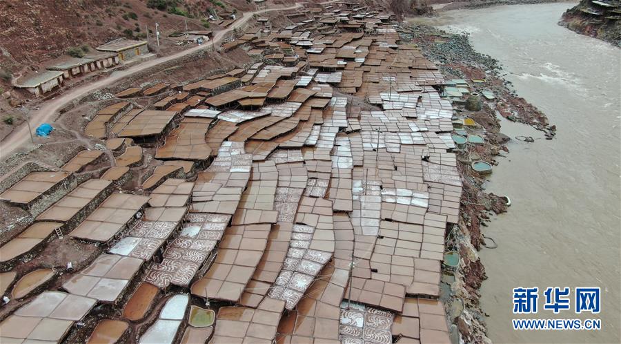 這是位于瀾滄江畔的西藏芒康縣納西民族鄉(xiāng)加達村的鹽田(6月4日無人機拍攝)。新華社記者晉美多吉攝