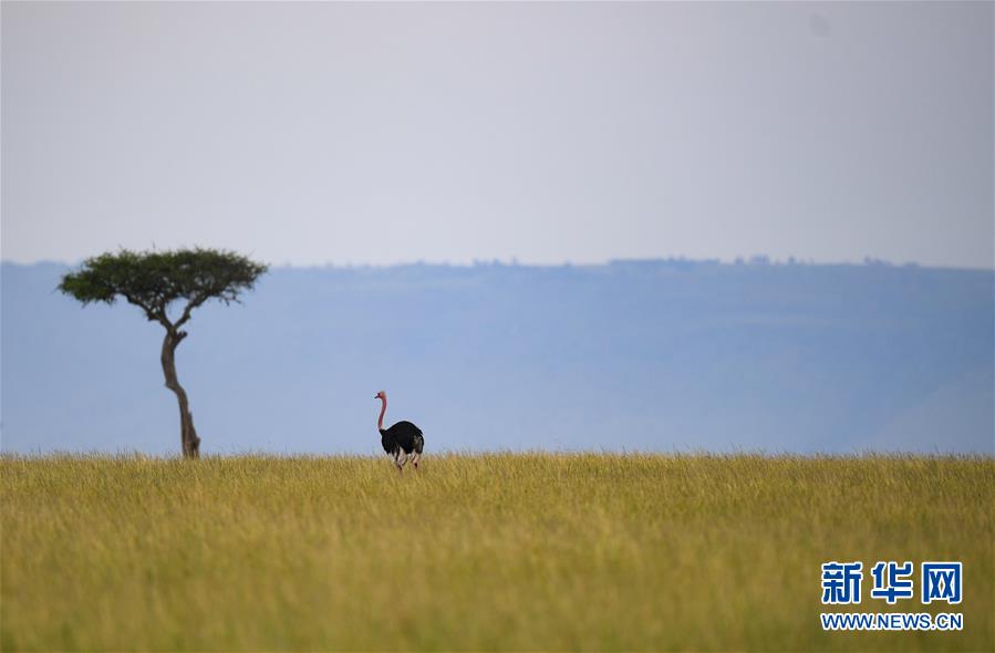 6月18日,在肯尼亞馬賽馬拉國家保護(hù)區(qū),一只鴕鳥在覓食。 新華社記者 李琰 攝