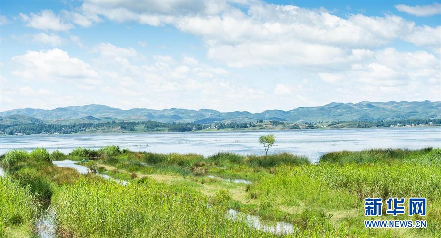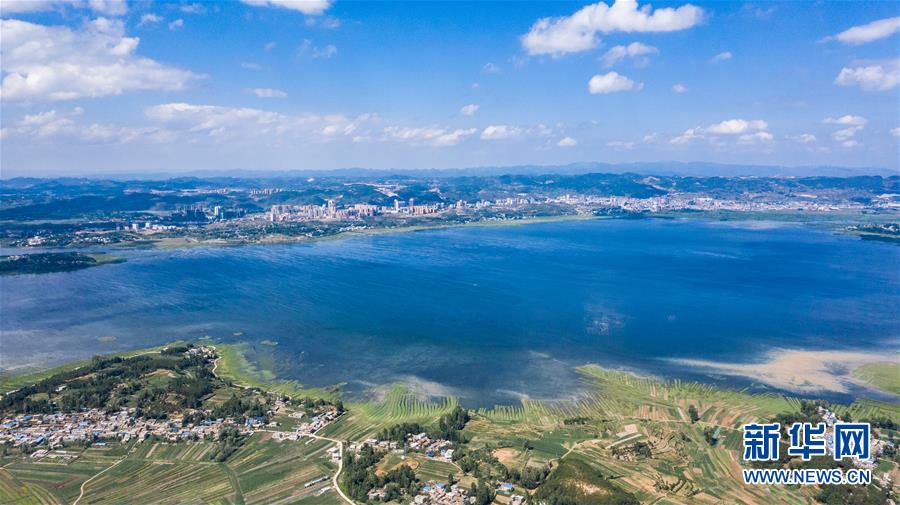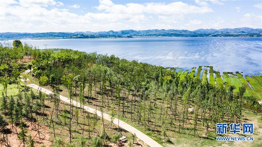 6月20日無人機(jī)拍攝的草海國家級自然保護(hù)區(qū)萬噸生活污水處理廠。 新華社記者 陶亮 攝
