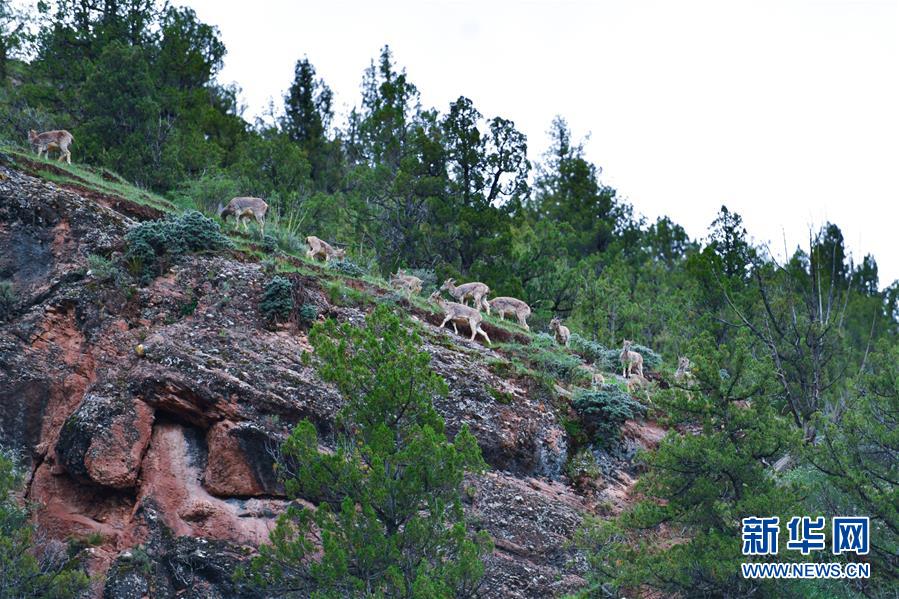 這是在青海省玉樹(shù)藏族自治州雜多縣昂賽鄉(xiāng)境內(nèi)拍攝的一群巖羊(6月21日攝)。 新華社記者 張龍 攝