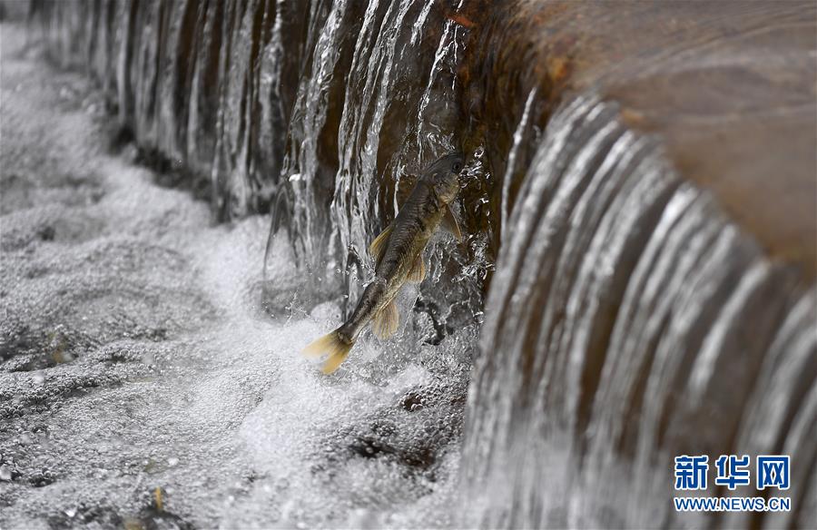 7月6日,在青海省剛察縣沙柳河里,一條湟魚(yú)在洄游。 新華社記者 張宏祥攝