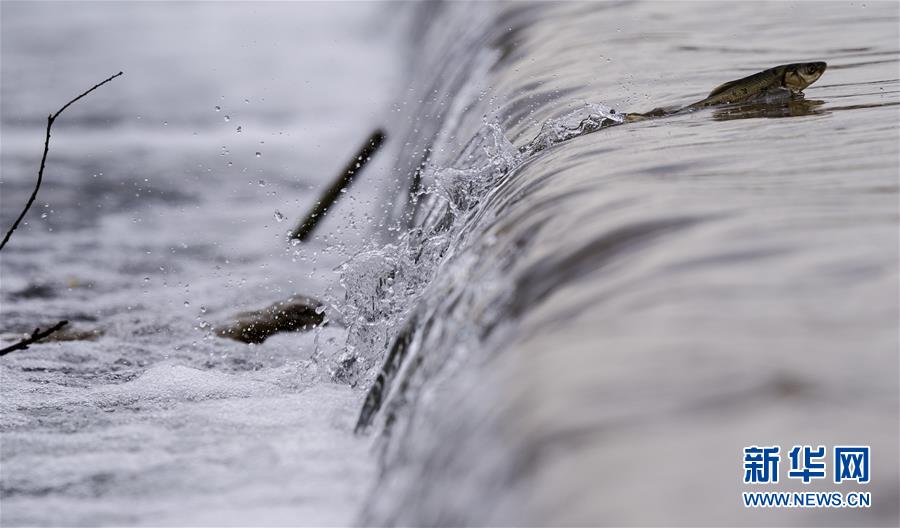 7月6日,在青海省剛察縣沙柳河里,一只湟魚(yú)躍起向上洄游。 新華社記者 費(fèi)茂華攝
