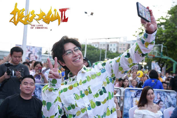孫耀威與現(xiàn)場觀眾合影自拍(片方供圖)
