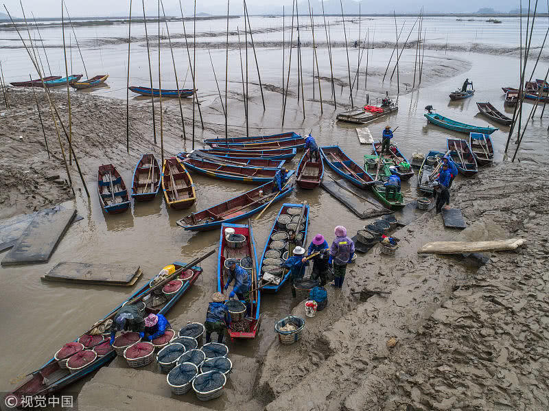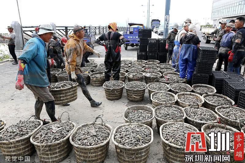時(shí)下正是沿海地區(qū)海蟶收獲的季節(jié),在江蘇連云港海邊的灘涂上,漁民們將收獲的海蟶裝箱外運(yùn),一片忙碌。