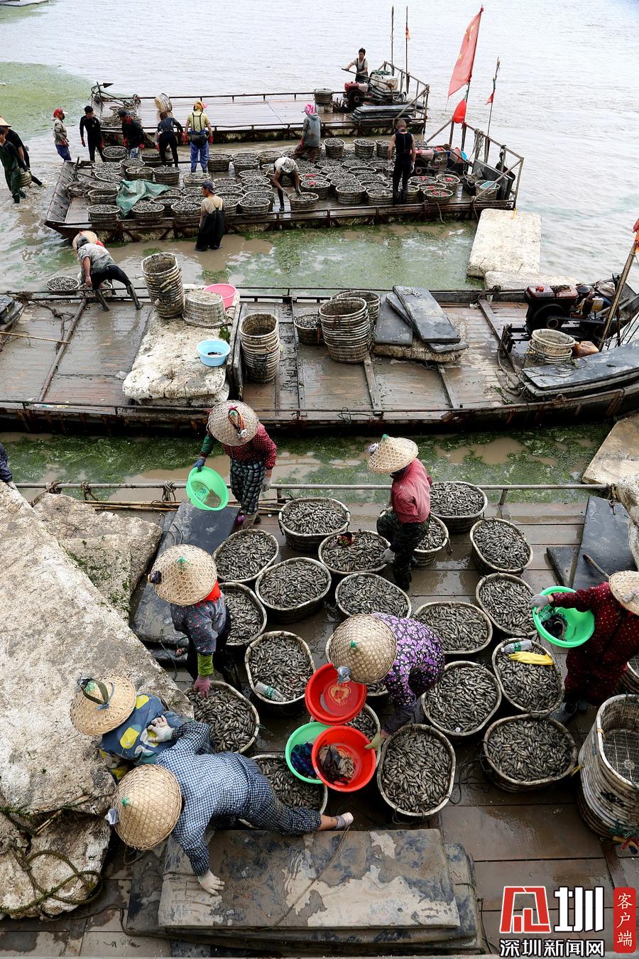 浙江臺(tái)州三門縣花橋鎮(zhèn)柵下村的文化禮堂前,村民們冒雨和商販交易蟶苗,現(xiàn)場(chǎng)一片繁忙。