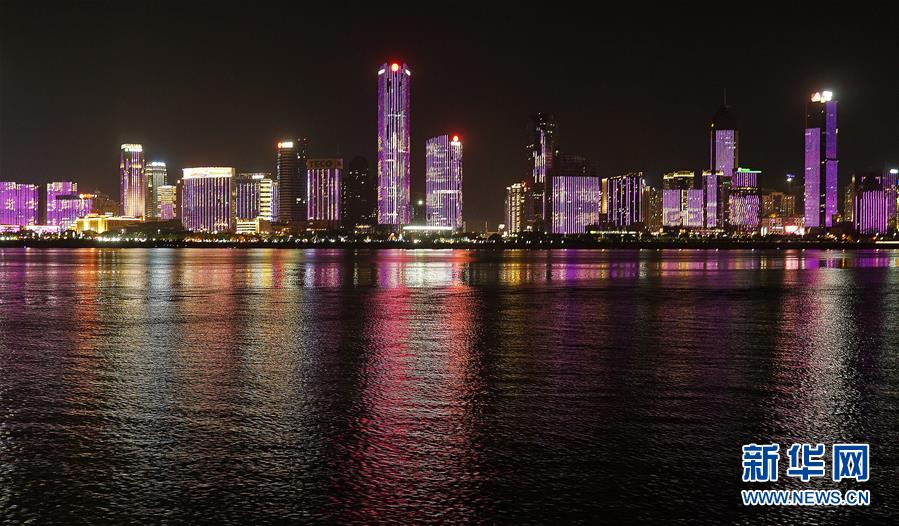 這是江西南昌贛江畔的燈光秀(8月6日攝)。 新華社記者萬象 攝