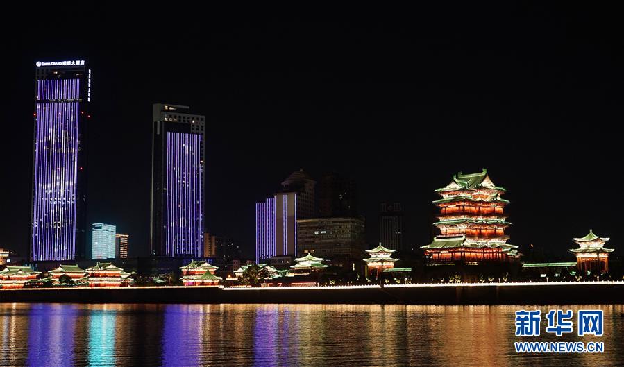 這是江西南昌贛江畔上演的燈光秀(8月6日攝)。 夏季,江西南昌市贛江畔高樓燈光璀璨,五光十色的燈光組成了壯觀的燈光秀,吸引了大批游客。據(jù)介紹,近年來,南昌為發(fā)展“夜經(jīng)濟”,著力打造夜游項目,夜游項目以滕王閣為核心,借助贛江兩岸景觀照明,結(jié)合同步音效,打造立體、動態(tài)、富有江西元素的風(fēng)景,讓游客感受夜景的美麗和江西的歷史文化。 新華社記者 萬象 攝
