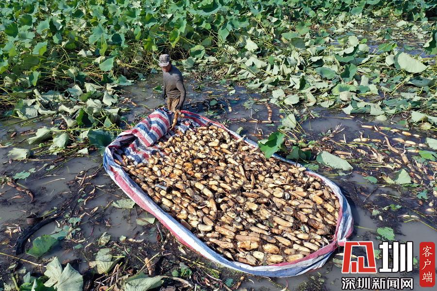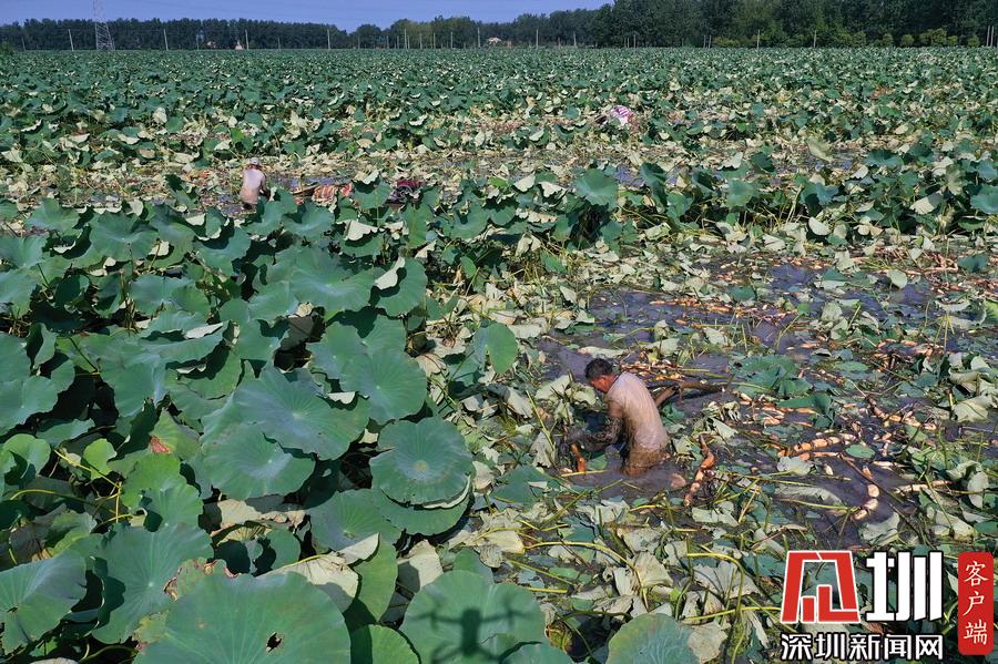 藕農(nóng)泥中“掘金”初秋時節(jié)采藕忙