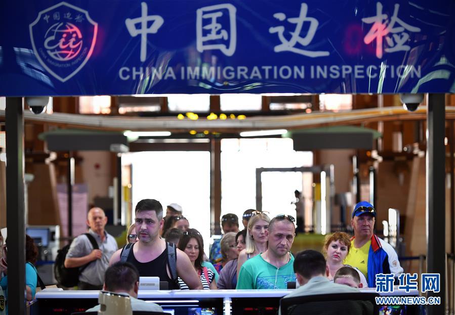 外國游客在三亞鳳凰國際機場通關(guān)入境(2018年6月1日攝)。新華社記者郭程攝