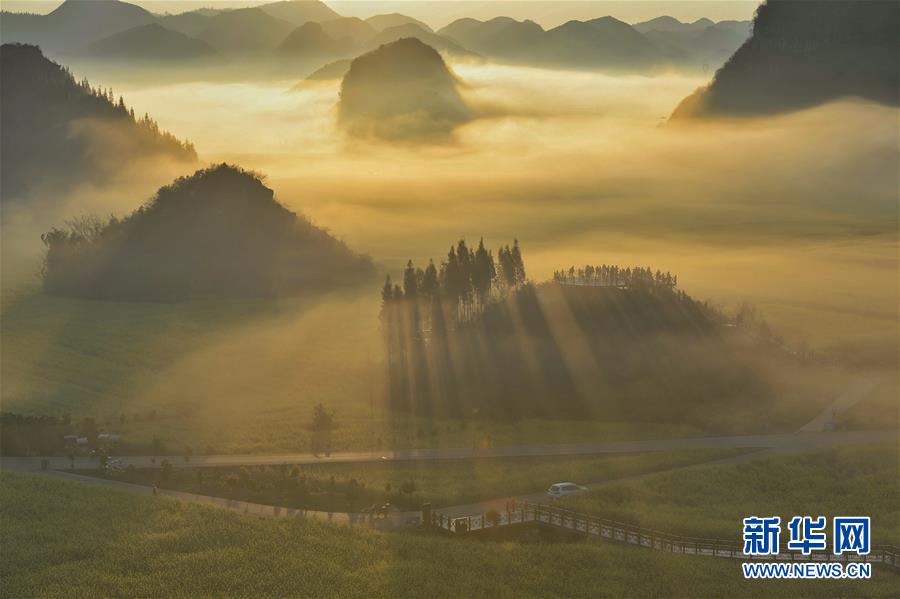 云南省羅平縣百萬畝油菜花田一景(2月19日無人機拍攝)。 新華社記者 秦晴 攝