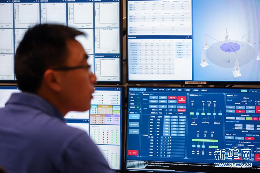 8月30日凌晨,工作人員在“中國(guó)天眼”總控室內(nèi)工作 。新華社記者 歐東衢 攝