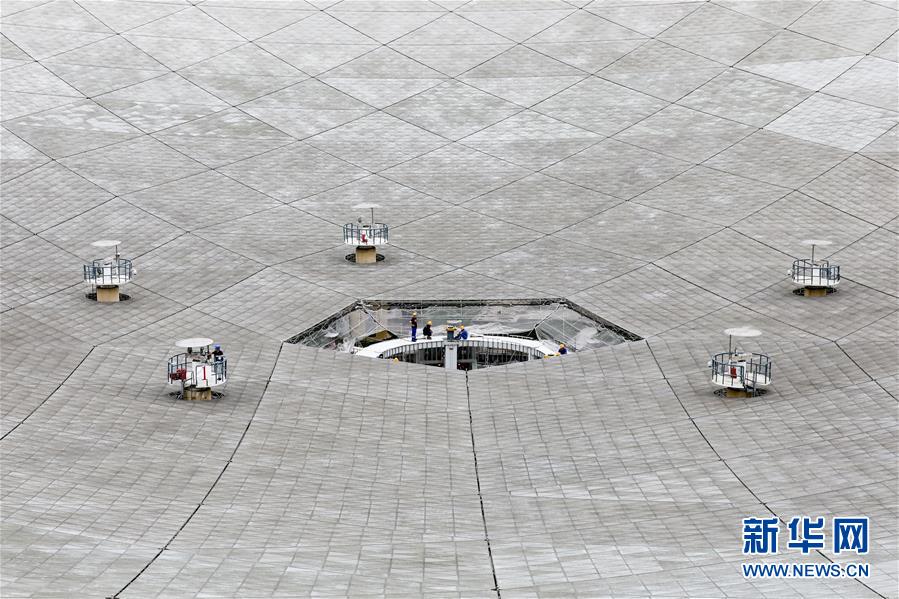 8月28日,工作人員在對(duì)FAST反射面板進(jìn)行檢修。 新華社記者 歐東衢 攝