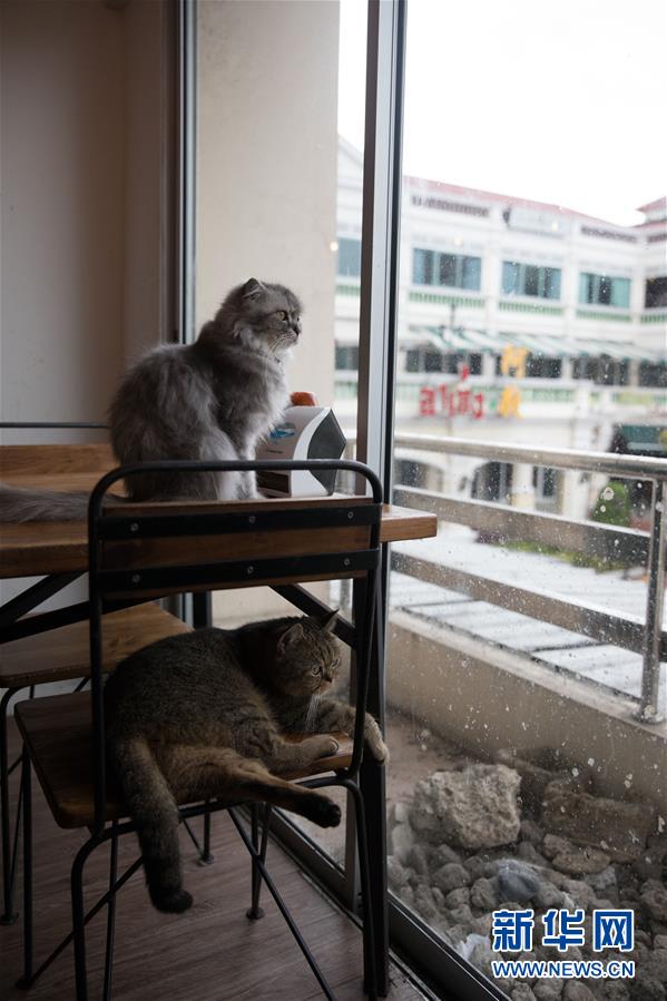 這是9月9日拍攝的曼谷動物咖啡館的兩只貓。新華社記者 張可任 攝