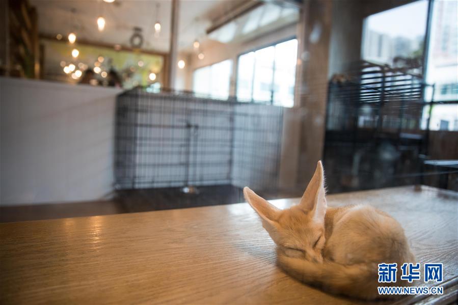 9月9日,一只闊耳狐在曼谷動(dòng)物咖啡館休息。 新華社記者 張可任 攝