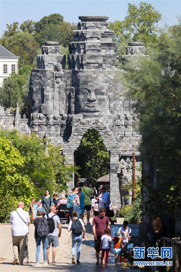 8月24日,在比利時(shí)布呂熱萊特市,游客在天堂動(dòng)物園具有東南亞風(fēng)情的園林區(qū)游玩。新華社記者 鄭煥松 攝