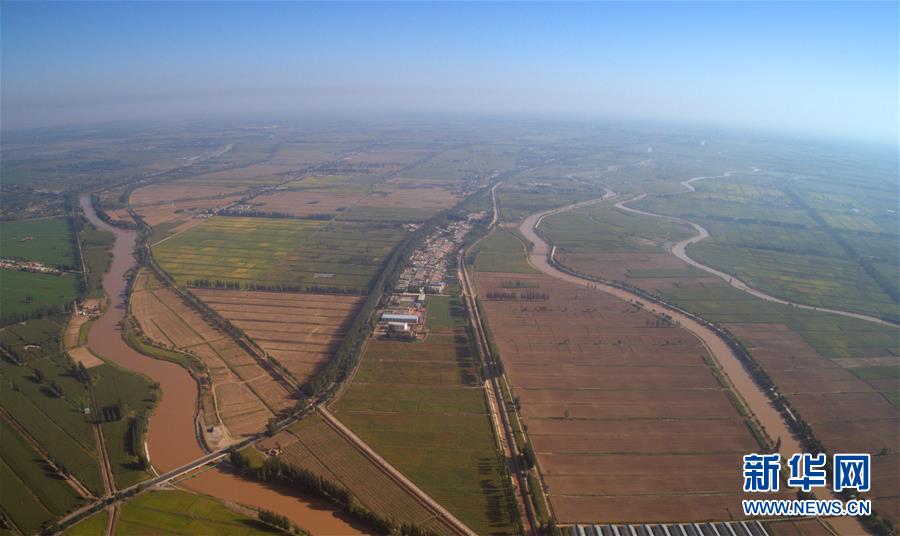 青銅峽市的寧夏引黃灌區(qū)(9月1日無(wú)人機(jī)拍攝)。新華社記者劉詩(shī)平攝
