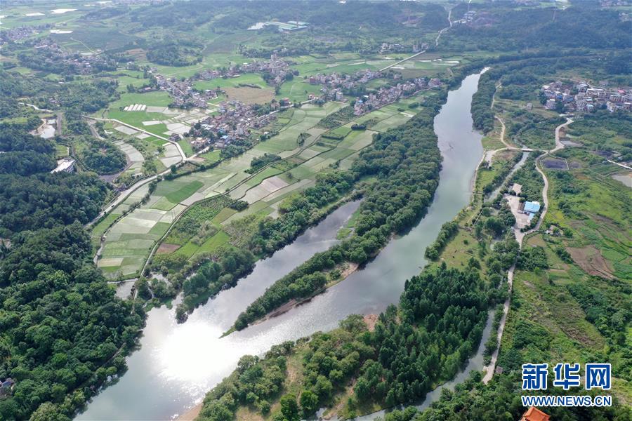 這是槎灘陂水利灌溉工程一景(5月29日無人機(jī)拍攝)。新華社記者彭昭之?dāng)z