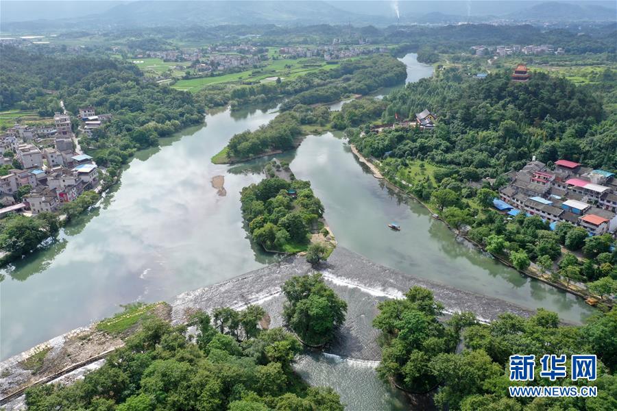 這是6月30日無人機(jī)拍攝的廣西興安縣靈渠。 位于廣西興安縣的靈渠是世界上保存最完整的古代水利工程之一,至今仍發(fā)揮著農(nóng)田灌溉、排洪泄洪作用。2018年,靈渠入選世界灌溉工程遺產(chǎn)名錄。 新華社記者 陸波岸 攝