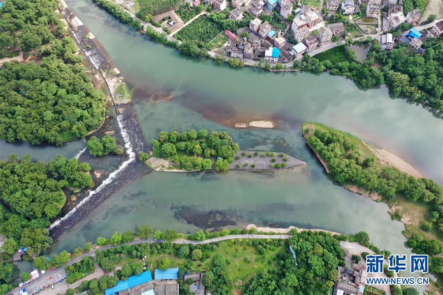 這是6月30日無人機拍攝的廣西興安縣靈渠。 位于廣西興安縣的靈渠是世界上保存最完整的古代水利工程之一,至今仍發(fā)揮著農(nóng)田灌溉、排洪泄洪作用。2018年,靈渠入選世界灌溉工程遺產(chǎn)名錄。 新華社記者 陸波岸 攝