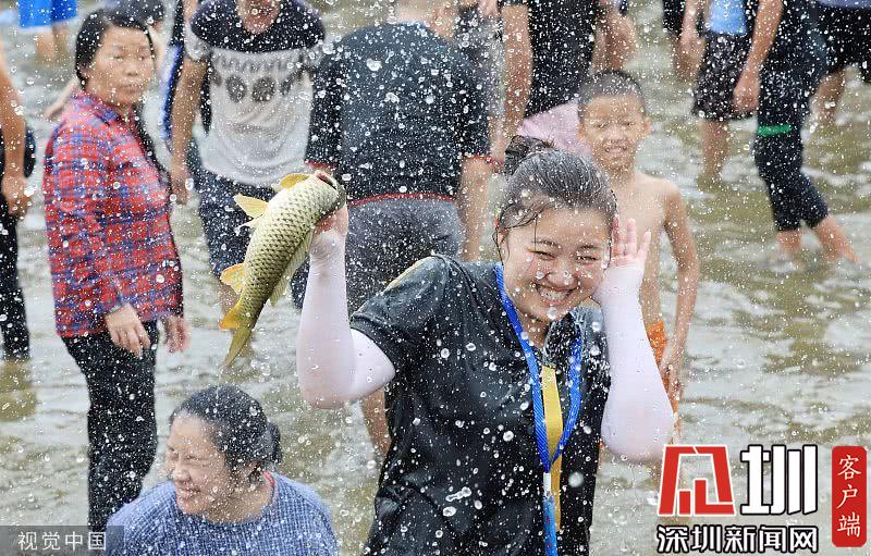 苗族群眾在活動(dòng)場(chǎng)地內(nèi)爭搶活魚,搶的魚越多,寓意福氣就越多。