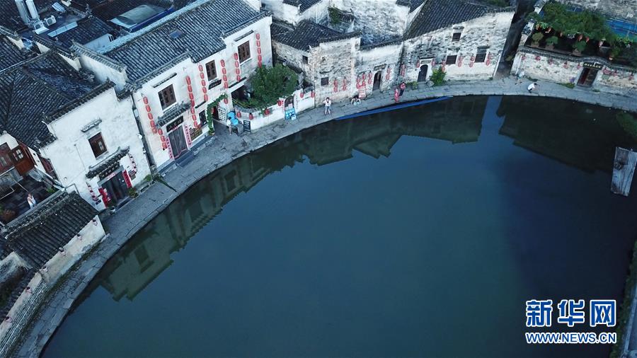 這是8月4日無人機(jī)拍攝的安徽黟縣宏村風(fēng)景區(qū)晨景。