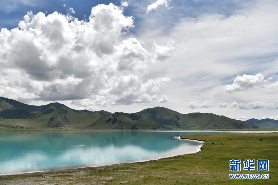 8月28日拍攝的羊卓雍錯(cuò)風(fēng)光。新華社記者李鑫攝