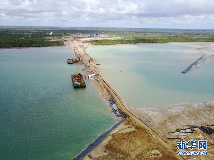這是2017年5月10日在肯尼亞東北部曼達灣海域拍攝的拉穆港項目的引堤,引堤將大陸與人造陸地連在一起。2012年3月,肯尼亞聯(lián)合南蘇丹和埃塞俄比亞啟動了“拉穆港-南蘇丹-埃塞俄比亞交通走廊”項目。項目包括鐵路、公路和石油管線等諸多組成部分,總投資額約250億美元。同年,中國交建從17家通過資格預(yù)審的國際公司中脫穎而出,獲得拉穆港項目的承建權(quán)。新華社記者潘思危攝
