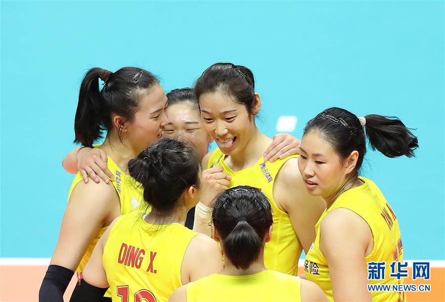 9月23日,中國隊(duì)球員朱婷(中)在得分后慶祝。當(dāng)日,在日本札幌舉行的2019年女排世界杯賽第二階段A組循環(huán)賽中,中國隊(duì)以3比0戰(zhàn)勝美國隊(duì)。新華社記者杜瀟逸攝