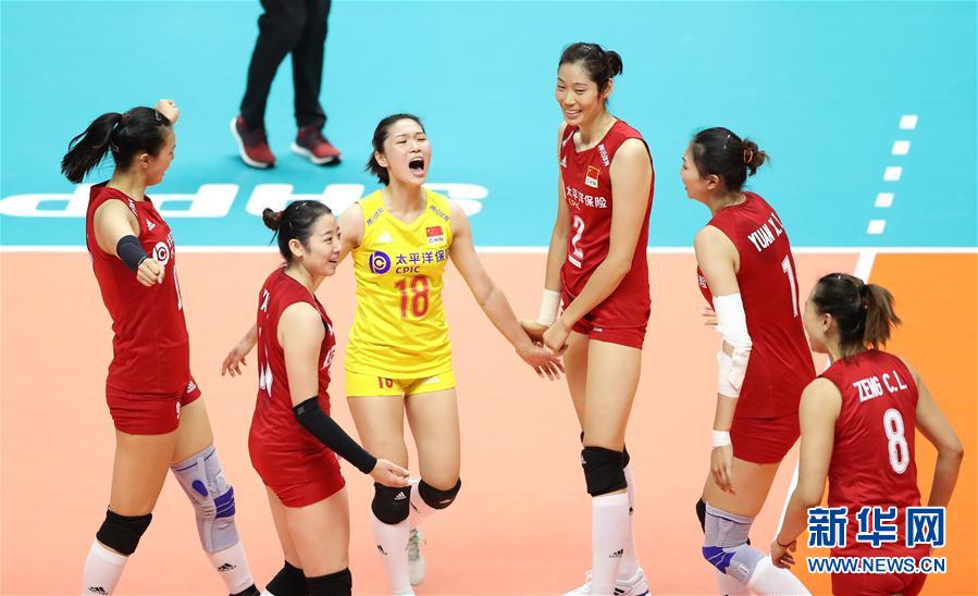 9月22日,中國隊球員在比賽中慶祝得分。當(dāng)日,在日本札幌舉行的2019年女排世界杯賽第二階段A組循環(huán)賽中,中國隊以3比2戰(zhàn)勝巴西隊。新華社記者杜瀟逸攝