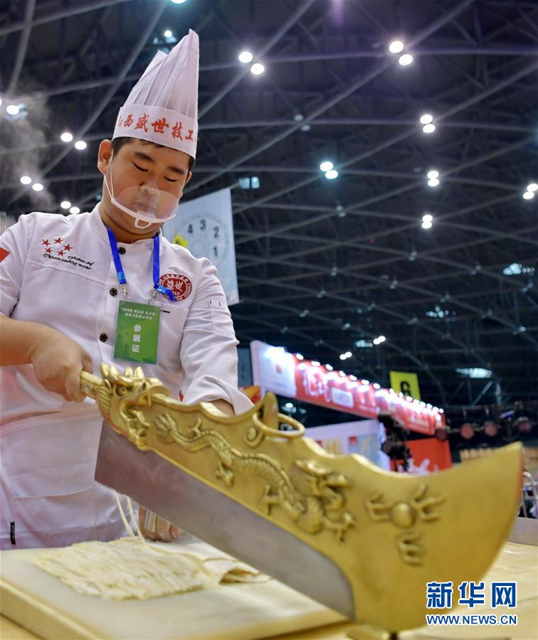 10月3日,面食師傅在制作大刀面。新華社記者 曹陽 攝
