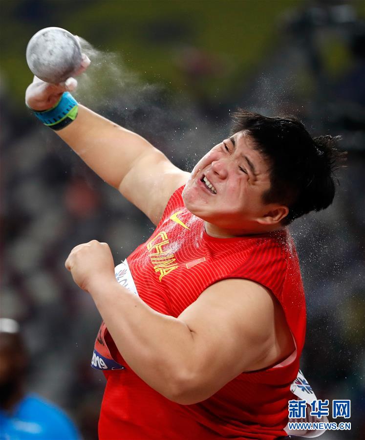 當日,在卡塔爾多哈舉行的2019國際田聯(lián)世界田徑錦標賽女子鉛球決賽中,衛(wèi)冕冠軍、中國選手鞏立姣以19米55的成績奪得冠軍。 新華社記者李明攝
