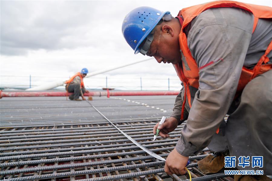 工人在大橋上進(jìn)行橋面鋪裝施工作業(yè)(8月19日攝)。新華社記者 王建威 攝