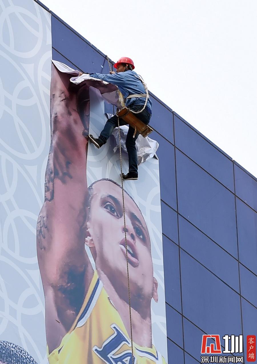 “2019NBA球迷之夜”取消,上海正大廣場(chǎng)外圍巨幅NBA中國(guó)賽海報(bào)被拆除。