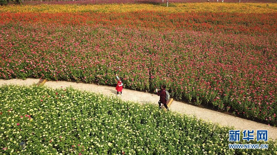 10月9日,游人在四季花海城市公園拍照。 秋日時節(jié),位于安徽省合肥市的四季花海城市公園花香四溢,色彩繽紛,成為游客和市民休閑游玩的好去處。 新華社記者 張端 攝