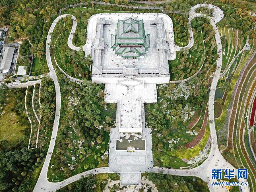 北京世園會園區(qū)內(nèi)的永寧閣(10月6日無人機拍攝)。新華社記者才揚攝
